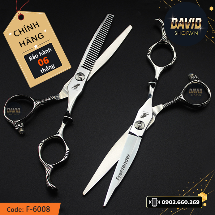 + Bộ kéo cắt tóc & kéo tỉa tóc Freelander 6 inch F-6008 có độ bền dài hạn.